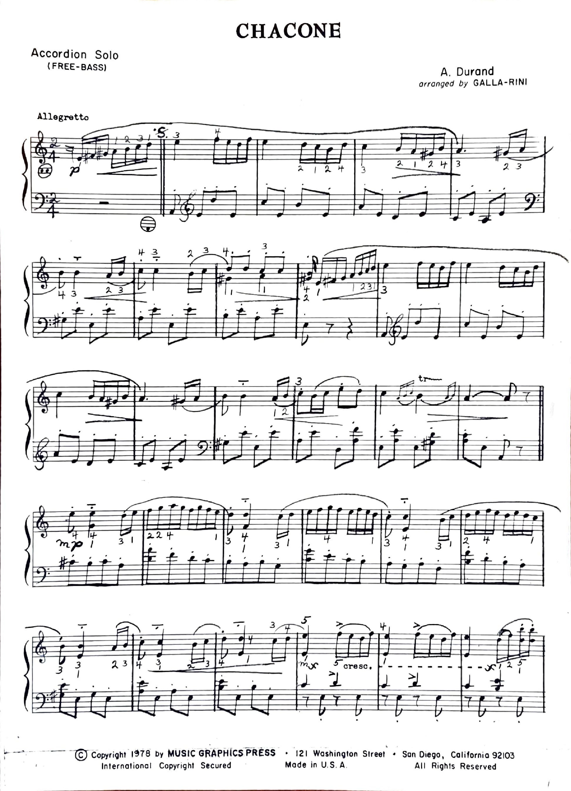 Often spelt Chacone in older editions. The composer, Auguste Durand (1830–1909) was French, born in Paris and active there as an organist, composer, and publisher. Publication Date: 1868, Romantic Period.
