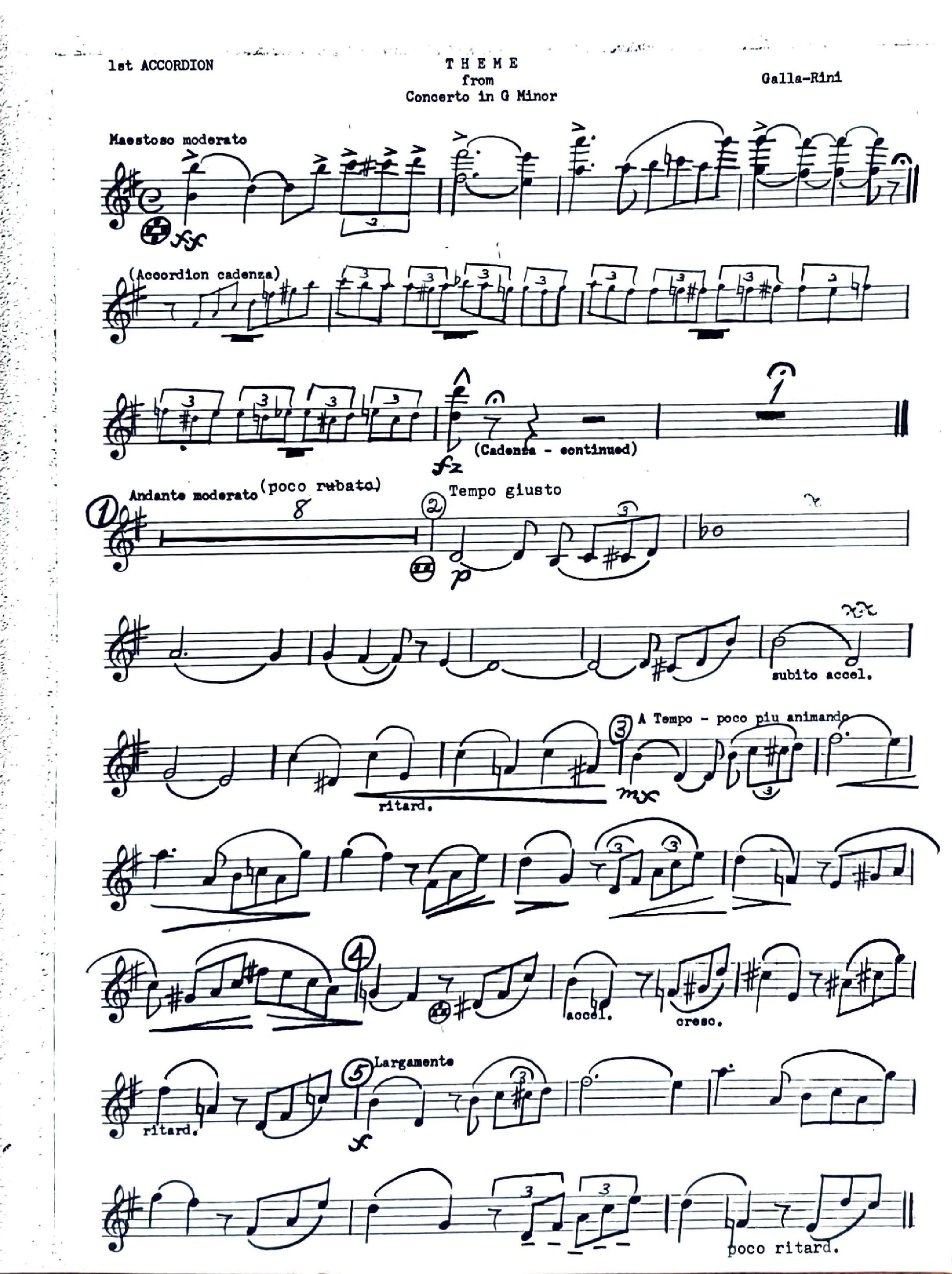 Accordion Solo part of the Concerto No.1 in G Minor by Anthony Galla-Rini