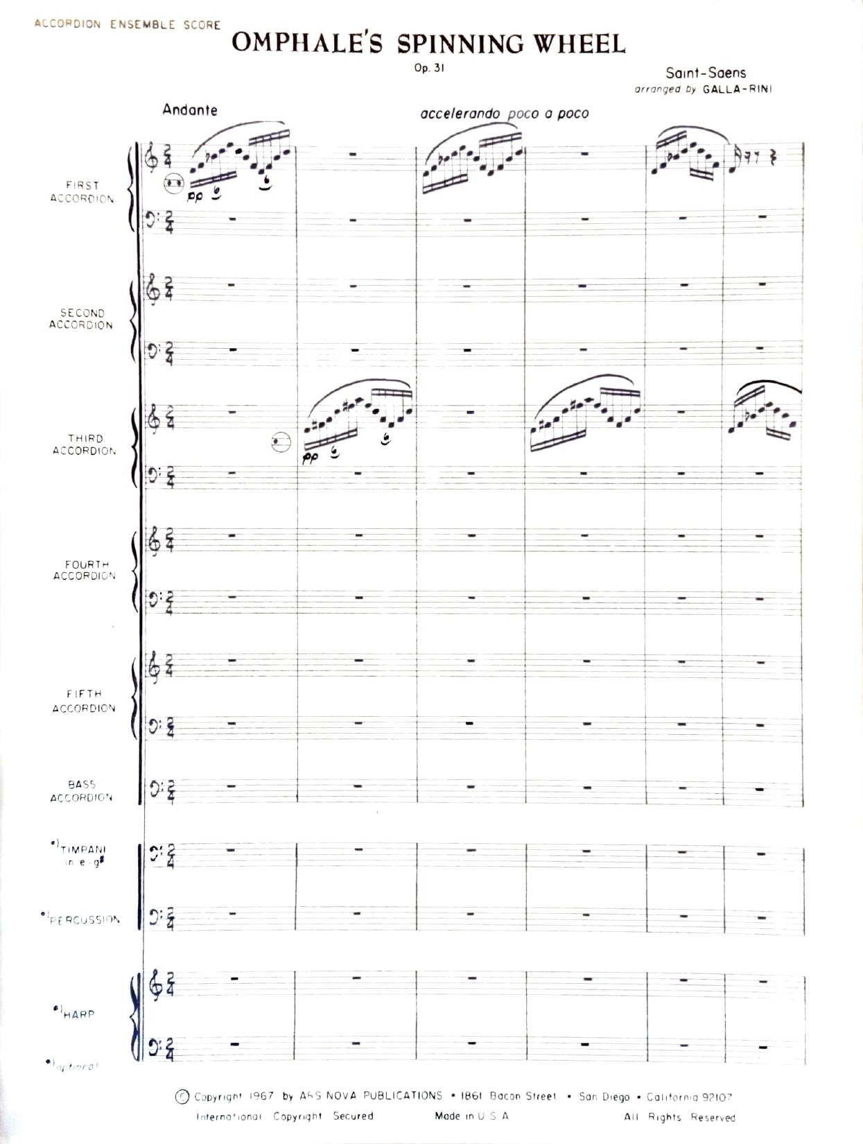 accordions 1-5, bass accordion, timpani, percussion, harp (optional).