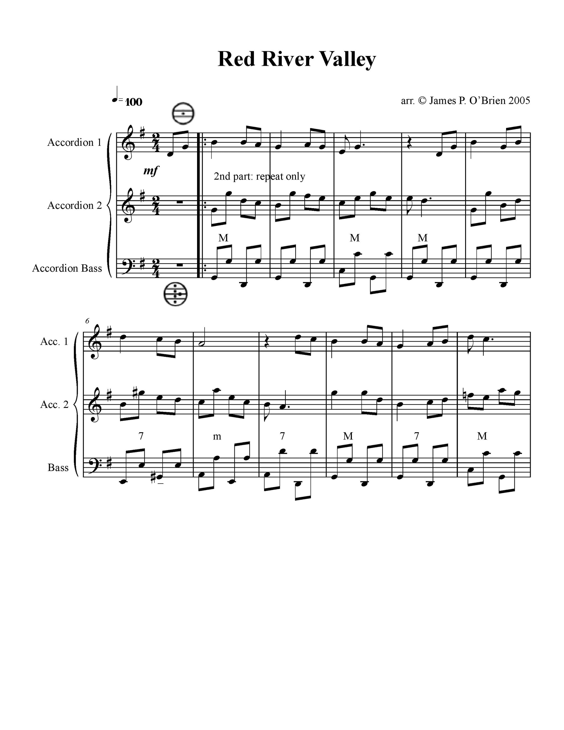 This traditional American tune of the West is set with a 2nd melody, which provides a sprightly accompaniment and nostalgic flavor. The Red River Valley is one of the southern rivers that feed into the Mississippi and cowpunchers who drove the herd to market adapted the words of this song from another tune called The Bright Sherman Valley.